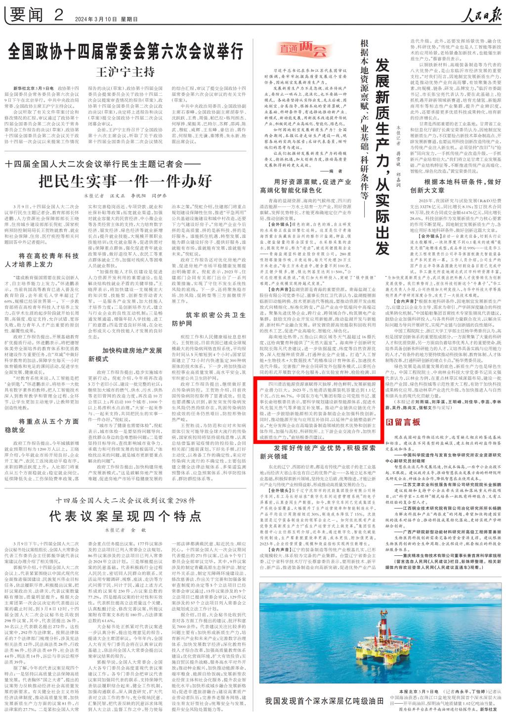 [人民日报]根据本地资源禀赋、产业基础、科研条件等——发展新质生产力,从实际出发