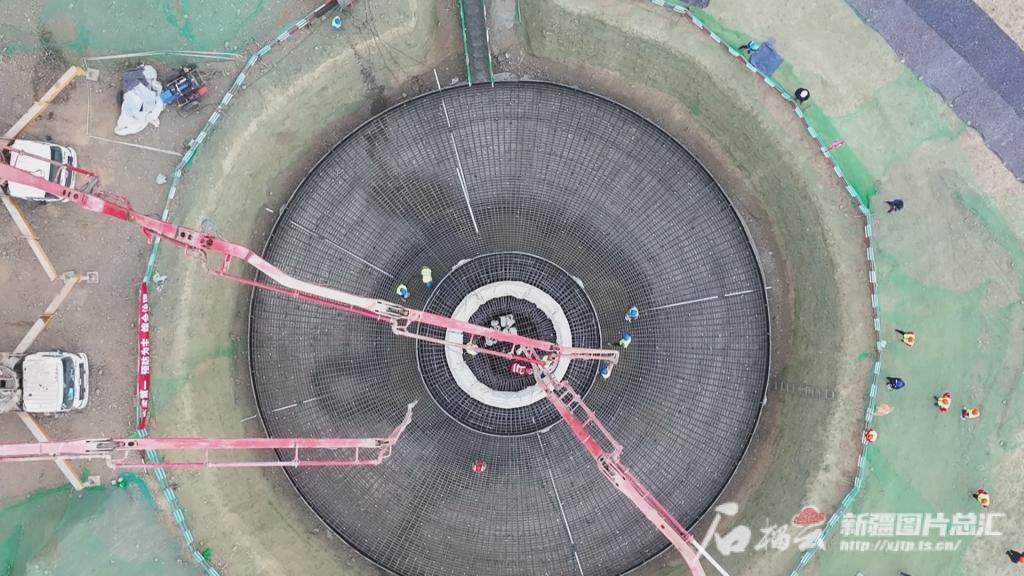 5月24日,PA视讯木垒100万千瓦风电项目风电机组塔基混凝土浇筑工作正加紧施工。加尔斯·吾那尔汉摄