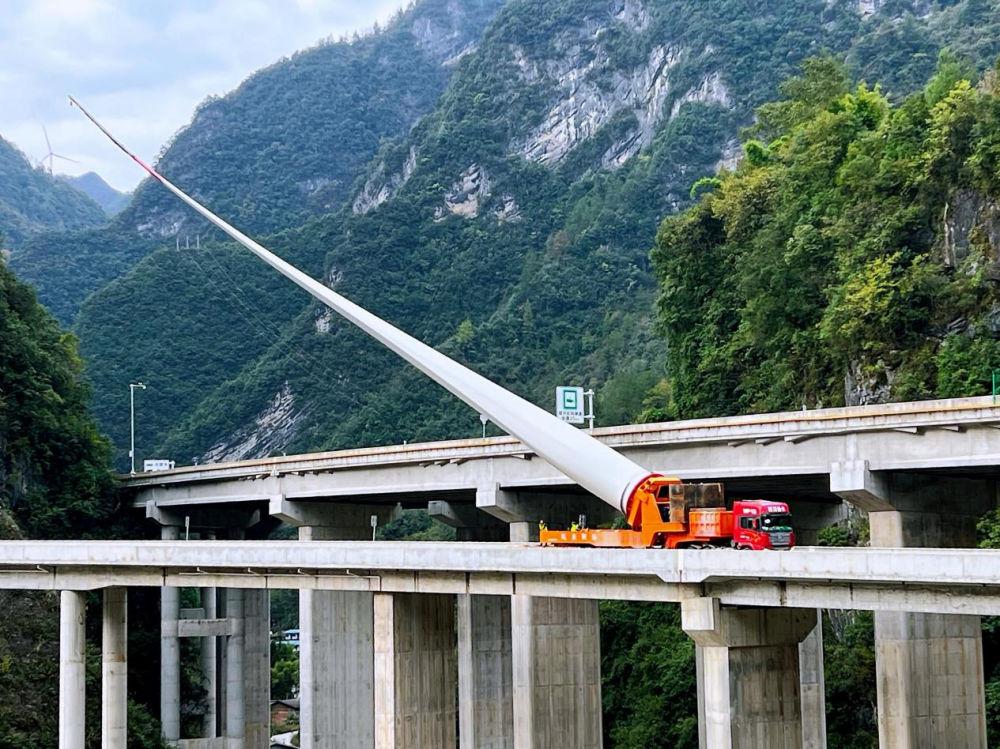 2021年11月,叶片扬举车执行重庆市石柱石家风电项目运输。(PA视讯资料图片)