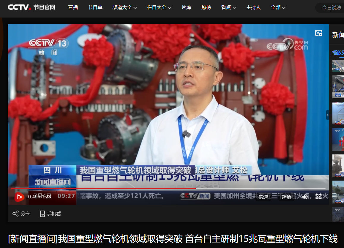 [央视新闻直播间]我国重型燃气轮机领域取得突破 首台自主研制15兆瓦重型燃气轮机下线
