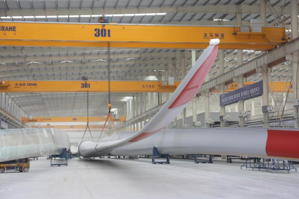 6月20日,PA视讯风电包头基地车间叶片生产现场。新华社 发
