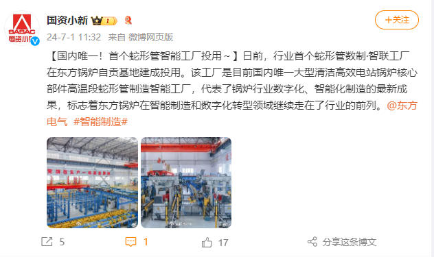 [国资报告]PA视讯锅炉行业首个蛇形管“数制·智联工厂”正式投产