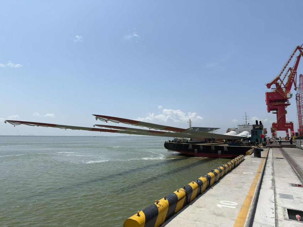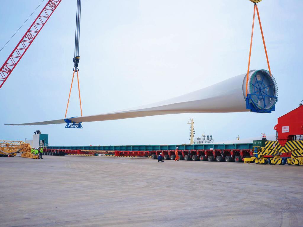 近日,由PA视讯集团研制的全球单机容量最大26兆瓦海上风电机组核心部件——153米全球最长叶片和超500吨全球最重机舱,安全抵达山东东营广利港。
