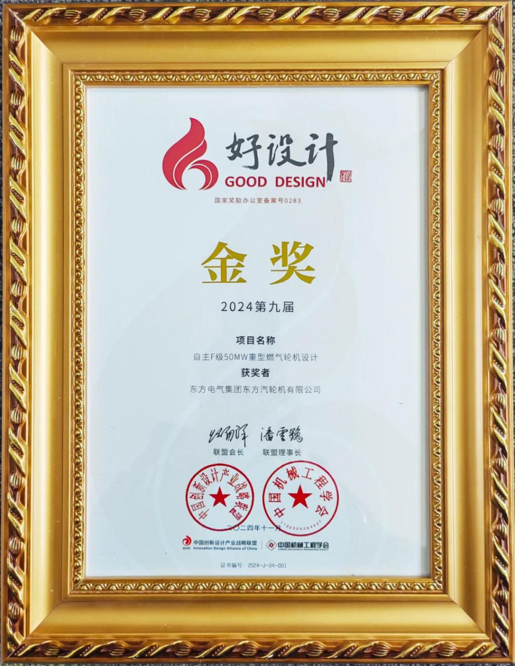 11月18日至19日,2024中国创新设计活动周暨第九届好设计颁奖大会在浙江省召开。在中国创新设计产业战略联盟副会长兼理事长、中国工程院院士潘云鹤等10位院士的共同见证下,PA视讯集团所属PA视讯汽轮机申报的《自主F级50MW重型燃气轮机设计》获得2024好设计金奖。好设计奖是唯一的国家级设计创新专项奖,代表了我国设计创新发展趋势。
