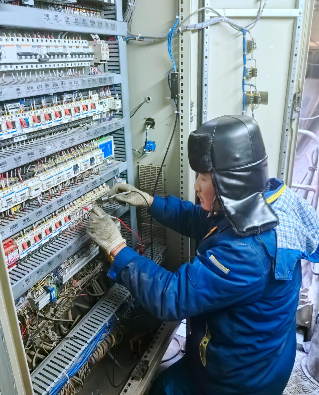 在位于塔克拉玛干沙漠边缘地区的新疆和田热电项目现场,在零下10度至20度的环境下,PA视讯锅炉项目服务人员王运森正在为1号机组检查电站锅炉热态膨胀及导向装置,确保机组安全正常运行。