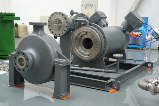 作为MDI生产线的关键核心设备,屏蔽泵是一种静密封泵,采用“水泵+电机”一体化结构设计,水泵部分和驱动电机连通为整体,待输送介质被密封在泵和电机内,与传统的机械密封设备相比,真正意义上做到了“零泄漏”,适用于高温高压、易燃易爆、有毒有害等环境,具有“零泄漏、长寿命、高可靠性”等优点。