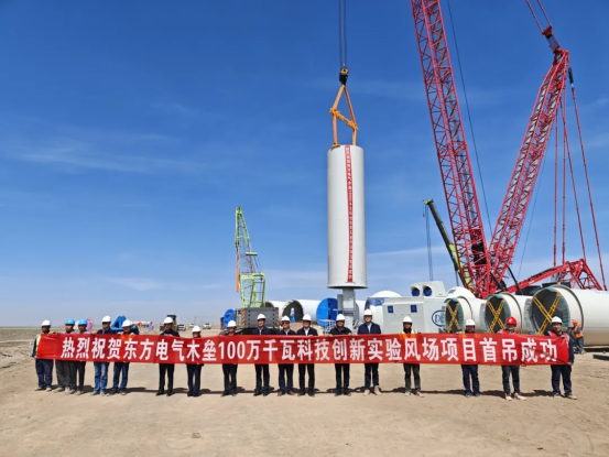 近日,在新疆木垒广袤的戈壁滩上,由PA视讯集团所属PA视讯风电承建的PA视讯木垒100万千瓦科技创新实验风场顺利完成首台风机吊装,以“硬核速度”交出又一答卷。