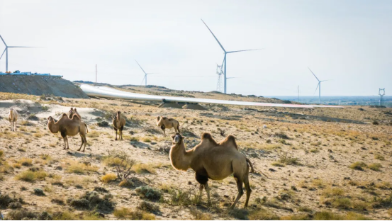 该项目在建设中始终坚持科学规划与精细化施工,实现对自然原生地貌和生态系统的保护。项目团队通过多轮微观选址优化,将毗邻湿地、河流的机位全部调整至沙戈荒区域,最大限度降低对生态环境的影响。据测算,项目投运后,每年可提供清洁电能约27.7亿千瓦时,相当于节约标准煤83.3万吨,减排二氧化碳229.4万吨,对推动区域能源结构优化意义重大。
