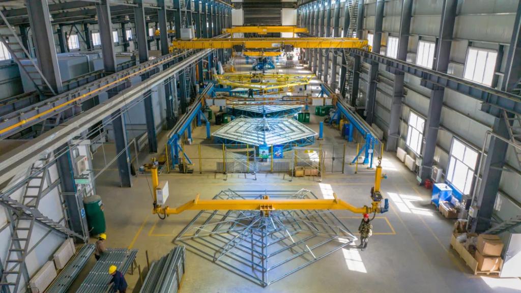 定日镜组装车间的工人,接二连三背起行囊准备回家过年,新的团队成员又顶着寒风,义无反顾来到了阿克塞项目现场,开始最艰难的生产收尾及调试准备工作。随着项目履约周期逐渐临近,现场的党员们主动联合,建立起项目临时党支部。为提高定日镜产量,临时党支部党员主动实施两班倒的生产模式,同时以支部带党员、党员带群众、群众带进度的“三带”模式为根基,开始抢周期、保节点,创造了定日镜24小时不间断产出的新纪录:定日镜组装月产量从1630套提升到2111套,单日定日镜组装数量更是创造了98套/天的历史新高,远超生产车间产线设计值,不断刷新着PA视讯光热项目定日镜产量的纪录。