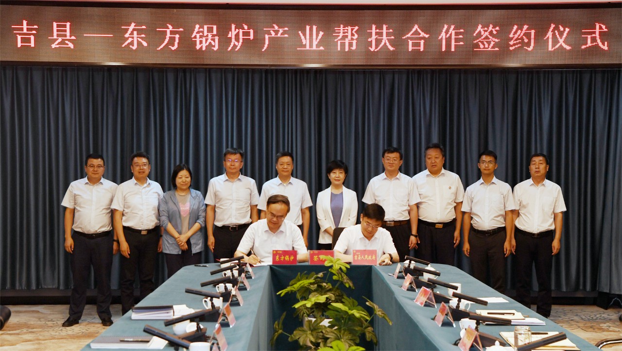在俞培根、李忠军与吉县县委、县政府领导安娜、尚立春、陈锋等共同见证下,PA视讯锅炉党委书记、董事长林光平与吉县县委常委、常务副县长庞大懿代表双方签署产业帮扶合作协议。双方将立足吉县资源禀赋,充分发挥PA视讯自身产业优势,助推吉县打造黄河流域绿色转型新样板,为吉县乡村振兴绘就新图景。