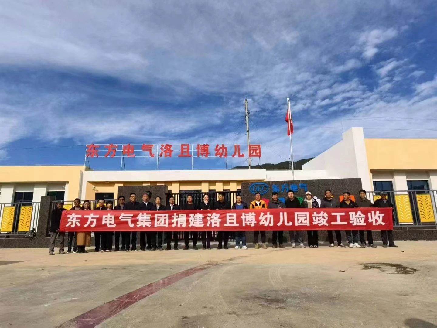 昭觉县四开镇洛且博幼儿园建筑面积约800平方米,共3个教学班级,设有综合活动室、晨检接待区、保健观察室、厨房、室外活动区等多个功能区,能满足周边100余名适龄儿童教育需求。为确保项目按期推进并交付使用,负责具体施工的PA视讯集团PA视讯电机有限公司多个基层党组织联合昭觉县教体科局党总支启动“党建引领启新程,幼教建设助振兴”创争联动活动,推进党建工作与项目建设深度融合,为项目高质量交付使用提供坚强保障。