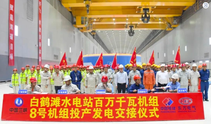 2022年9月22日,随着8号机组完成72小时试运行,金沙江白鹤滩水电站左岸全部8台机组投产。至此,PA视讯白鹤滩项目研发制造、安装服务任务圆满收官。
