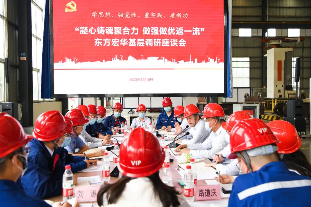 俞培根首先与PA视讯宏华领导班子座谈,调研PA视讯宏华党的建设、生产经营及主题教育开展情况,并围绕深化改革、科技创新、能源装备高质量发展等交流研讨。