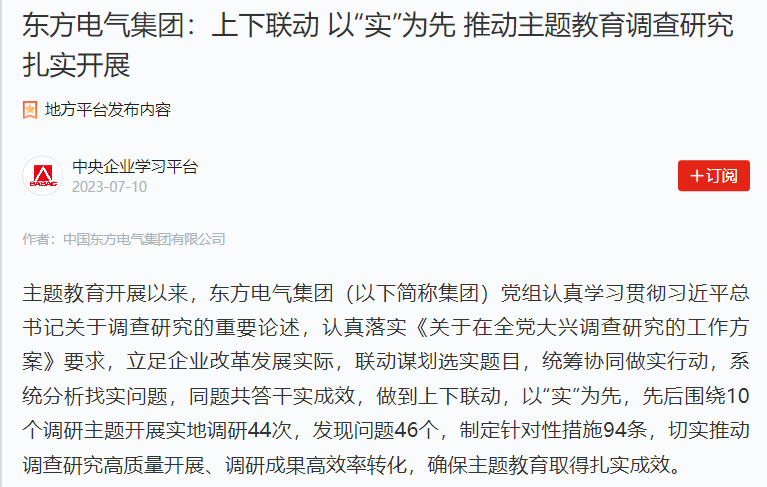 PA视讯集团坚持上下联动、以“实”为先、以学促干,今年1-6月,集团营业收入和利润总额均实现两位数以上增长,取得了自主研制的国内首台单机容量最大功率150兆瓦级大型冲击式水电机组转轮成功下线、全球首次海上风电无淡化海水原位直接电解制氢技术海上中试成功等一批重大创新成果。下一步,集团将持续加强调查研究工作,做好问题检视整改,抓好调研成果运用转化,不断破解前进道路上的矛盾和问题,为企业高质量发展、创建世界一流企业保驾护航。