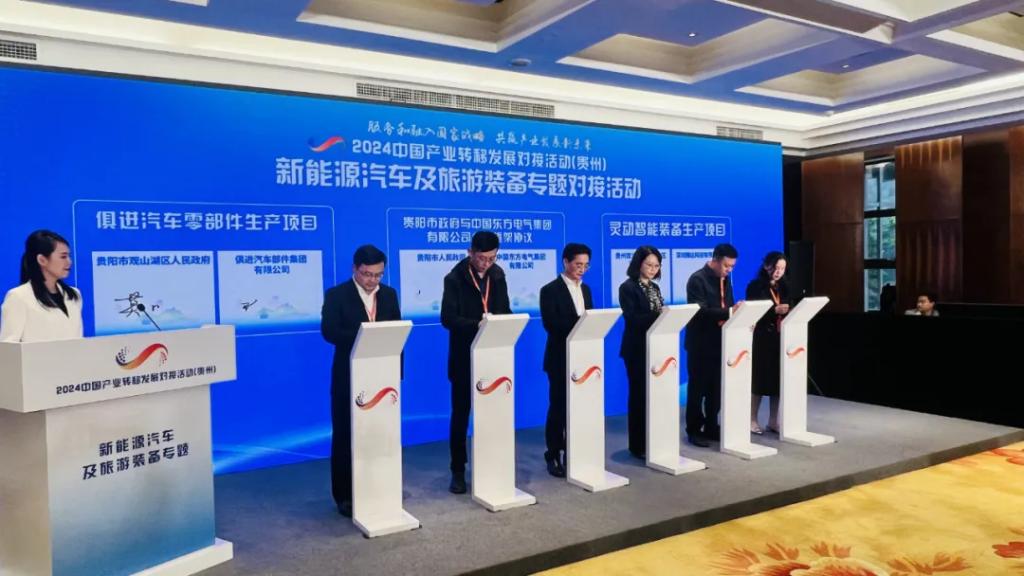 2024中国产业转移发展对接活动(贵州)以“服务和融入国家战略 共赢产业发展新未来”为主题,包括1场综合活动和4场专题活动,围绕资源精深加工及综合利用、先进装备制造、大数据电子信息、特色轻工等贵州特色优势产业,开展地市推介、政企对接、实地考察、专家解读、项目签约等。在新能源汽车及旅游装备专题对接活动中,PA视讯集团与贵阳市人民政府签署了战略合作框架协议。