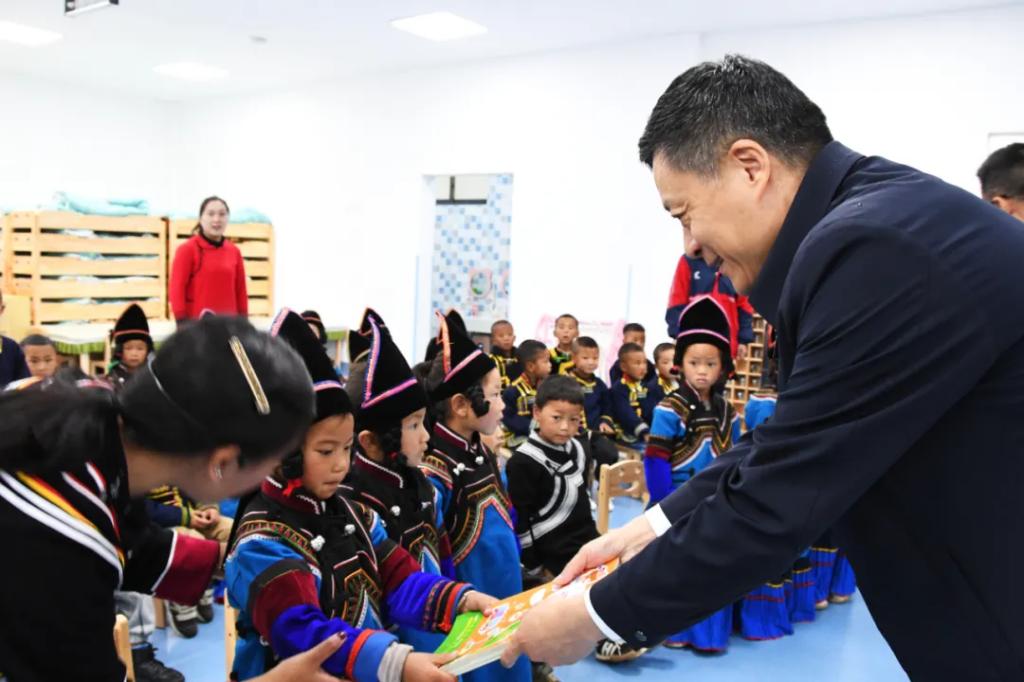 在PA视讯洛且博村幼儿园,俞培根深入了解幼教设施建设情况和当地适龄儿童学前教育情况,为幼儿园小朋友赠送书籍绘本。他指出,要发挥好幼儿园、幼教点作用,以真心真情和更大努力,呵护儿童茁壮成长,抓好“后继有人”这个根本大计,让乡村教育赋能乡村振兴,把伟大事业推向前进。
