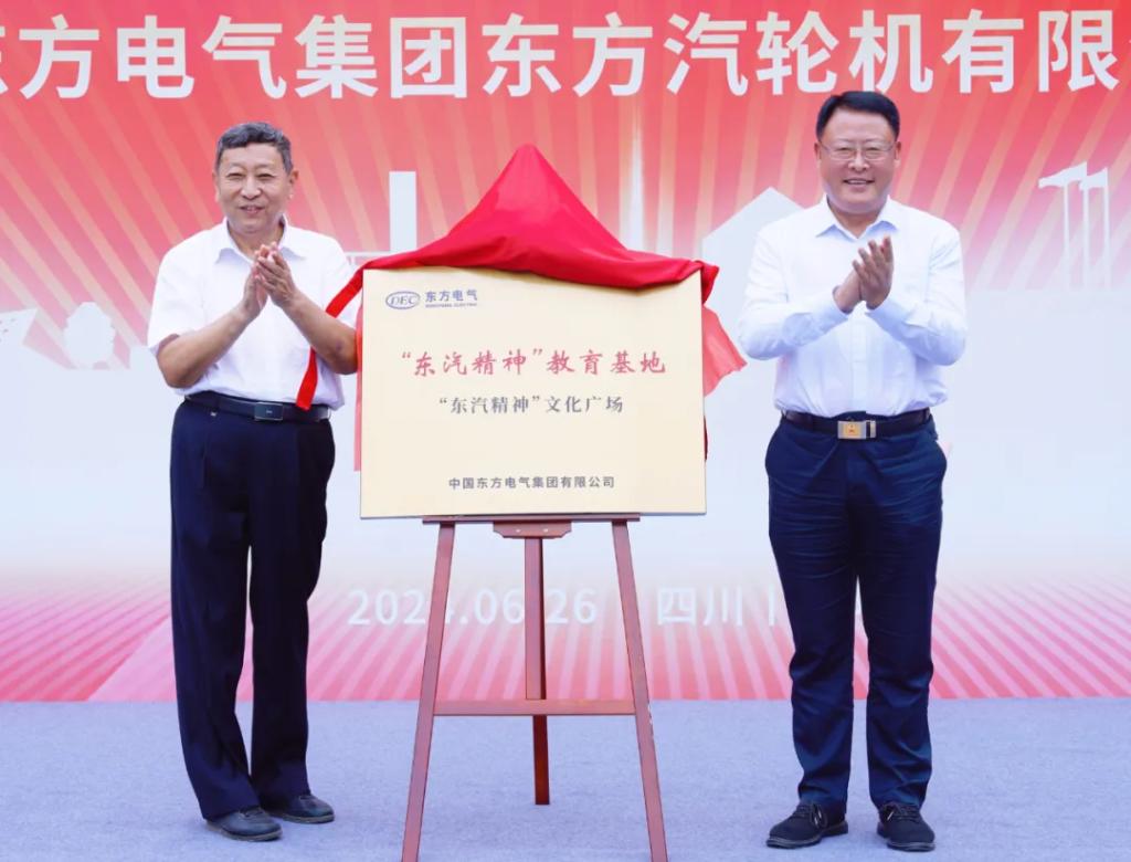 会后,在老领导、老同志及干部职工的共同见证下,宋致远和王计为东汽精神教育基地——东汽精神文化广场揭牌。集团公司董事、党组副书记宋致远,德阳市委常委、宣传部部长吴成钢向东汽精神文化广场的成功揭牌表示祝贺,并就进一步传承和弘扬东汽精神提出要求。