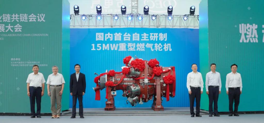 开幕式后,国内首个燃机智慧制造基地揭幕暨国内首台自主研制15兆瓦重型燃气轮机下线活动在PA视讯汽轮机举行。李文清、庄树新、孙昌基、俞培根、王计、刘光强上台,为国内首个燃机智慧制造基地揭幕,并见证国内首台自主研制15兆瓦重型燃气轮机(代号G15)正式下线。