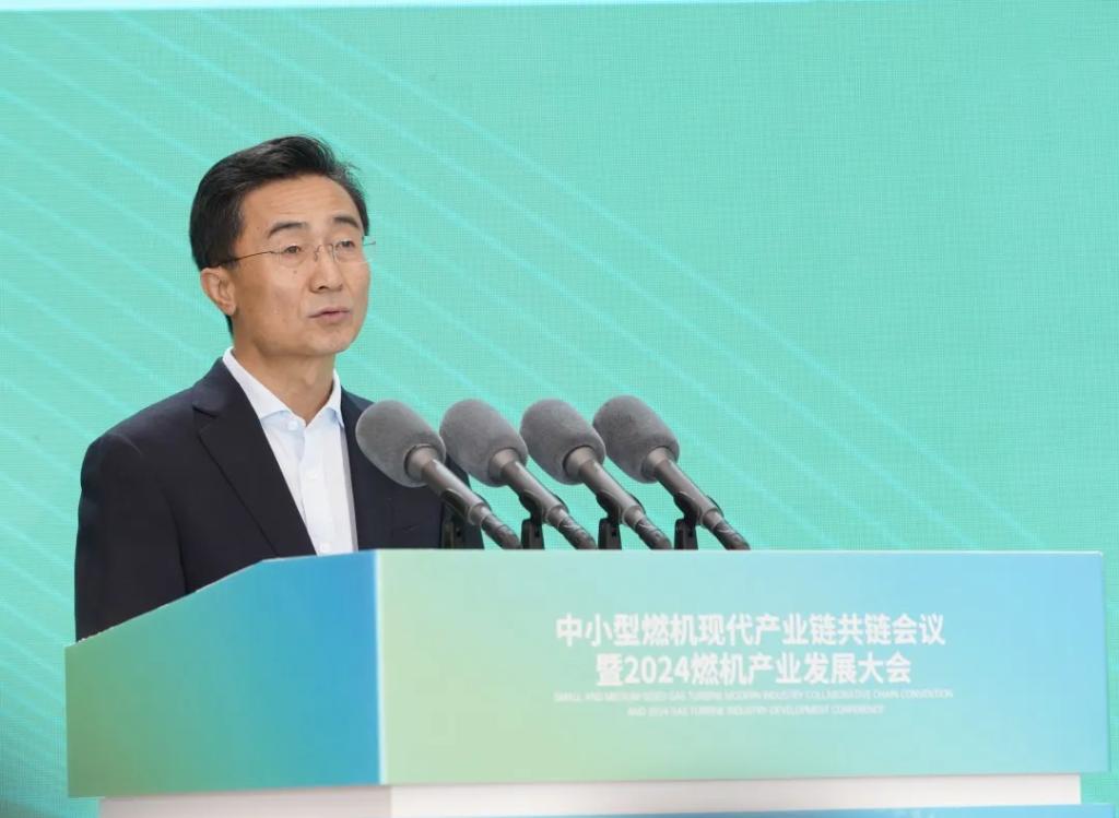 刘光强代表德阳市委、市政府向大会的召开表示祝贺。他表示,近年来,德阳对标国省所需、立足德阳所能,推动能源装备产业高质量发展,为推进工业强市建设注入了强劲动力。他指出,本次大会既是提升中小型燃机产业链韧性和竞争力的务实之举,也是全面落实制造强国战略的具体行动。