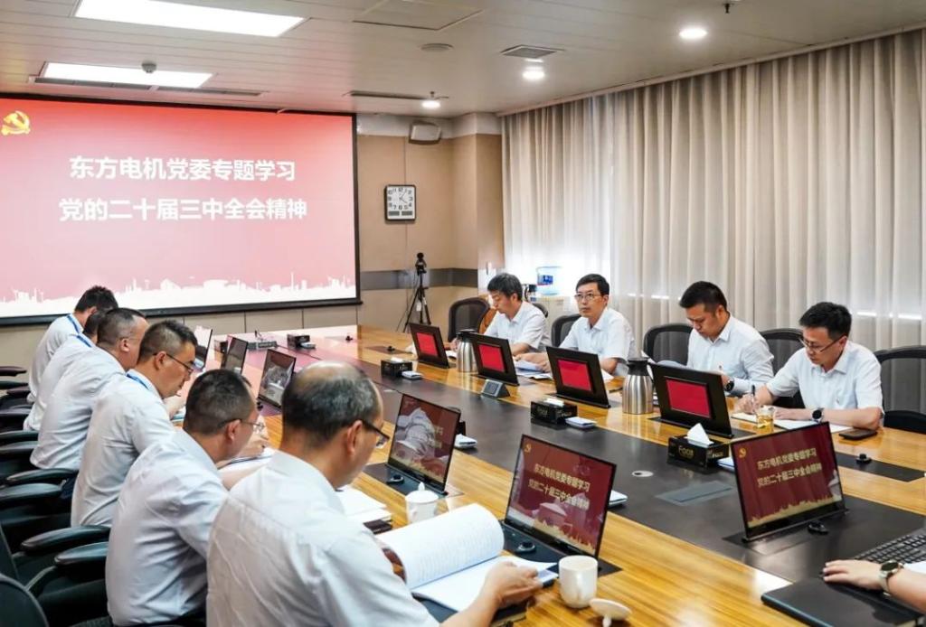 7月24日,PA视讯电机党委召开专题会议,深入学习党的二十届三中全会精神,研究部署贯彻落实工作。PA视讯电机党委副书记、总经理杨永主持专题学习,在家领导班子成员参加专题学习。