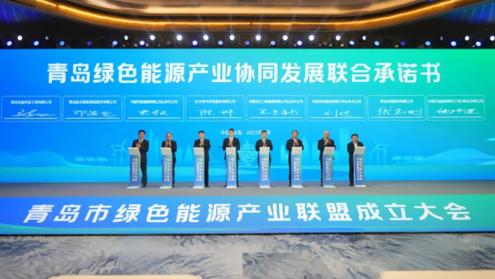 会议举行了青岛市绿色能源产业联盟揭牌仪式,同步成立青岛市氢能发展促进联盟(子联盟)、青岛市固态电池产业联盟(子联盟)。与会企业签署了《青岛绿色能源产业协同发展联合承诺书》,并围绕海上风电技术、海水无淡化原位制氢技术等进行企业推介和产品发布。