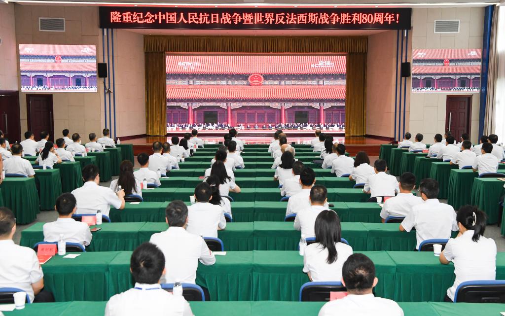 上午9时,PA视讯集团两万余名领导干部、党员、统战人士、团员青年、专家劳模、职工群众等怀着激动的心情,在全国各省市自治区及境外工程项目现场的200余个会场,通过电视、互联网等方式,同步收听收看纪念中国人民抗日战争暨世界反法西斯战争胜利80周年大会,认真聆听习近平总书记重要讲话。